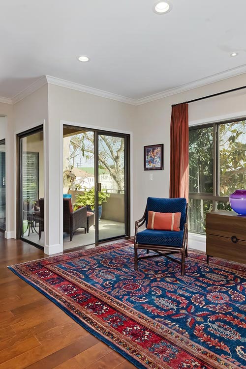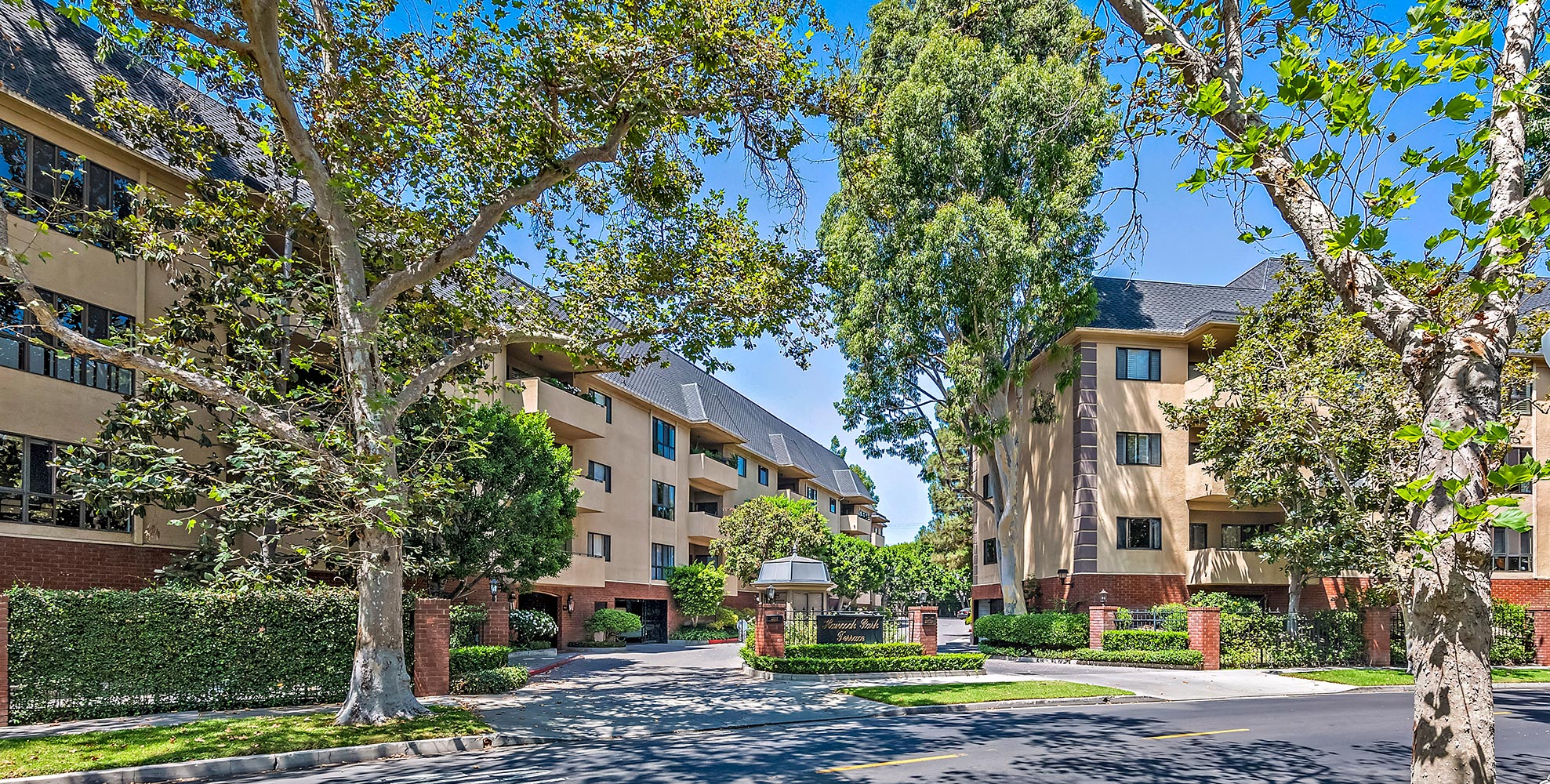 Fully renovated in 2017 with top-of-the-line finishes, this spacious 2-bd + 2.5 bath condo in Hancock Park Terrace overlooks a quiet, tree-lined street. Formal entry opens to large, bright living area with hardwood floors and crown molding; adjacent dining area can accommodate seating for 8 with seamless flow to the designer kitchen featuring custom cabinetry, stainless steel appliances, recessed lighting and elevated ceiling; laundry/utility closet and guest powder room are easily accessible from the kitchen and foyer. Unique floorplan with 2 en-suite bedrooms accessible from the main living area, plus access to large, private balcony overlooking the treetops from all rooms. Master features large walk-in closet, gorgeous full bath with dual sinks, soaking tub, and glass-walled shower; second bedroom has large closet/storage space and French doors opening to patio access. Garage has 2 tandem parking spaces + storage. Hancock Park Terrace is a gated community with 24-hour security, within walking distance to LA Tennis Club, Larchmont Village, and more. HOA dues of $1,035/mo includes water, cable TV (including HBO), Internet service, Earthquake insurance, plus year-round heated pool and spa.
